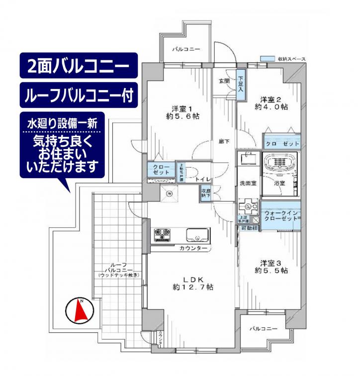 □3LDKファミリータイプ!南東北角部屋住居!