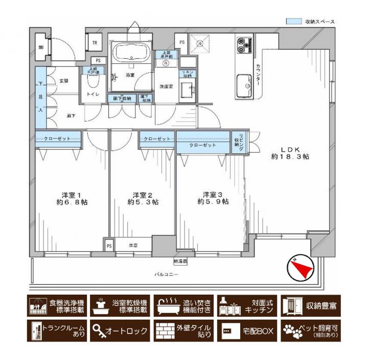 ◆収納豊富(廊下収納、リビング収納、リネン収納、吊戸棚など)