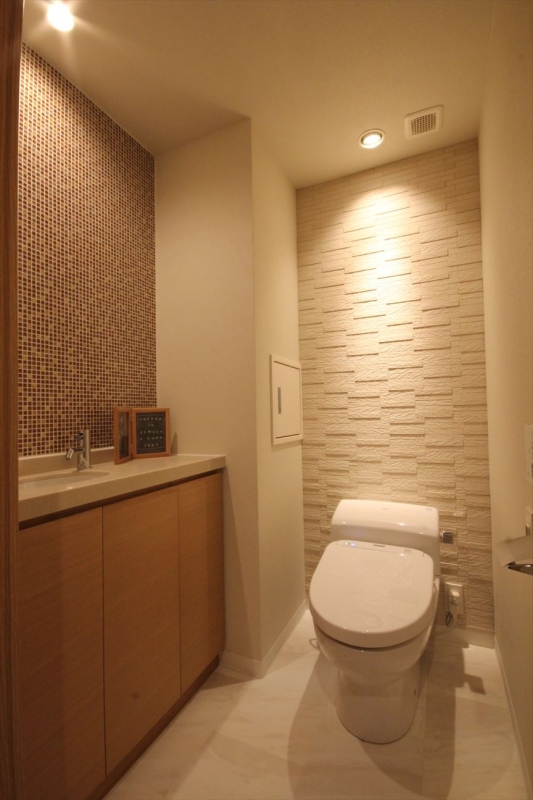 ◆LDや洋室にはエコカラットタイルと照明を組み合わせ、デザイン性と機能性を高めた空間に