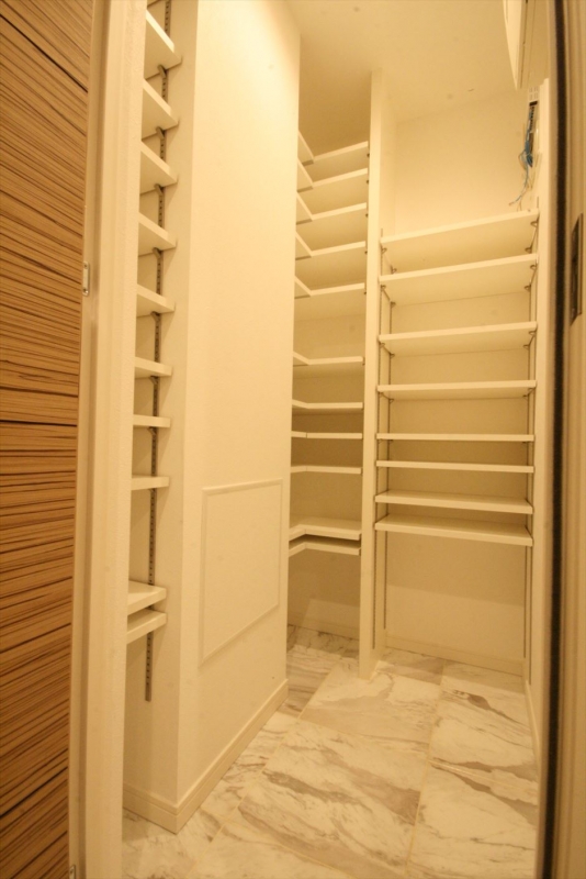 ・ウォークインクローゼットや吊戸棚、リビング収納にシューズインクロークなど各所に収納スペースあり