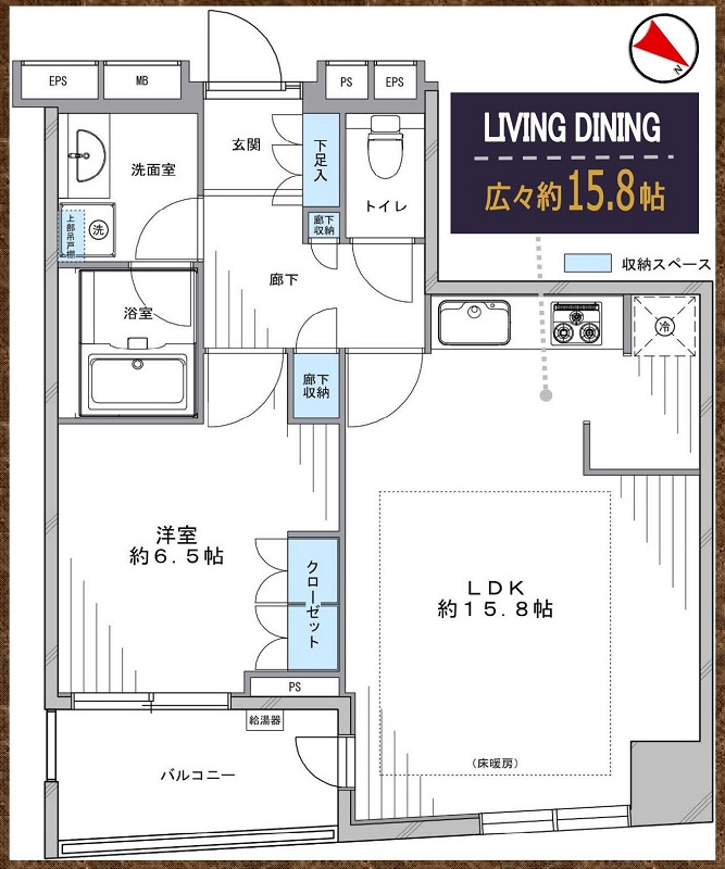 ◆広々リビングダイニング15.8帖(床暖房)