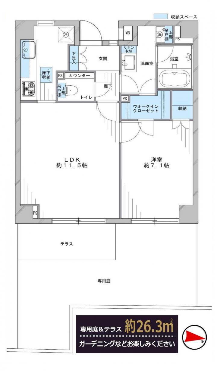 □専用庭&テラス約26.3平米!ガーデニングもお楽しみいただけます